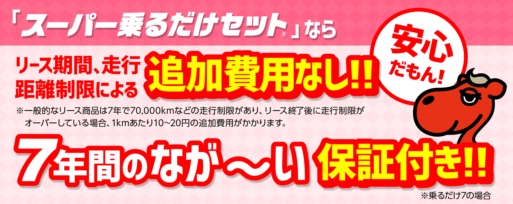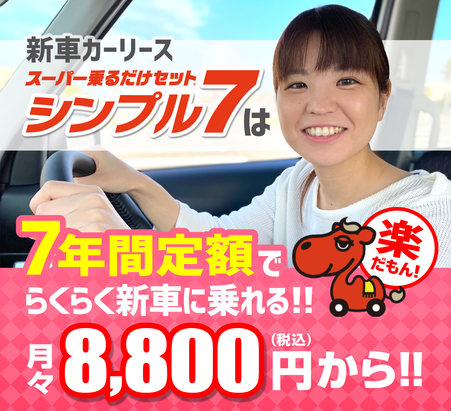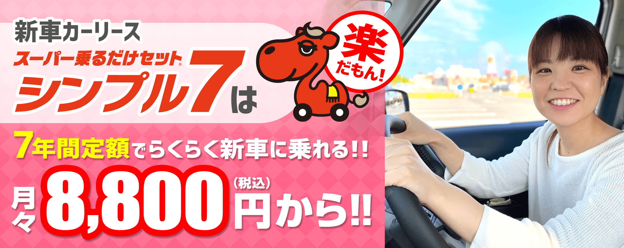 国産全メーカーの新⾞を取り扱うマイカーリース『スーパー乗るだけセット』は、「頭⾦0円・⽉々定額・メンテナンスもコミコミ」といいことずくめ。