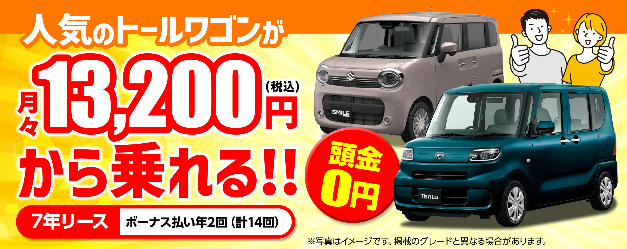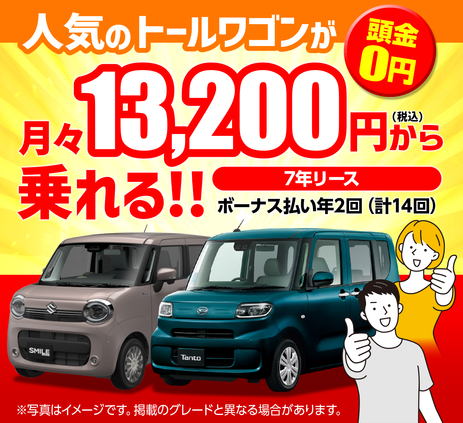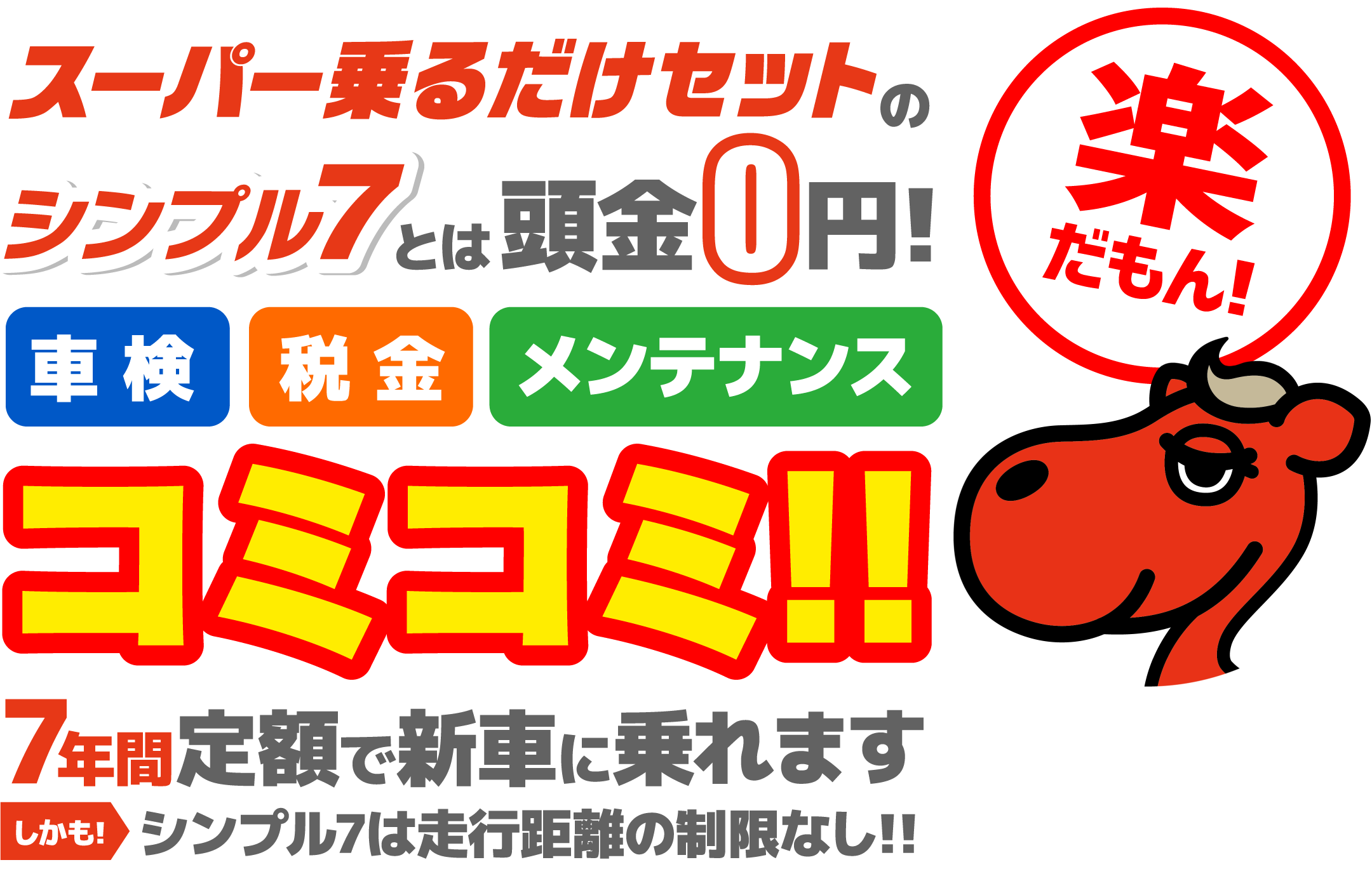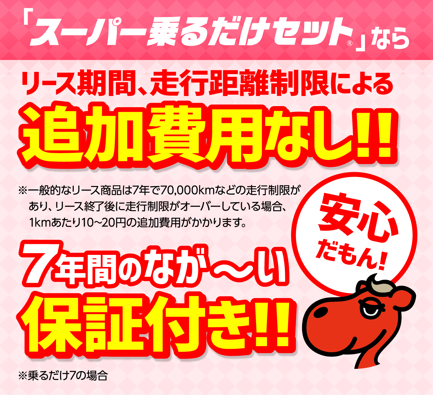 国産全メーカーの新⾞を取り扱うマイカーリース『スーパー乗るだけセット』は、「頭⾦0円・⽉々定額・メンテナンスもコミコミ」といいことずくめ。