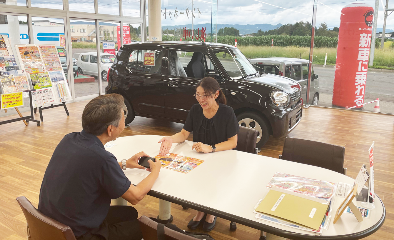 当店はリースの他に新⾞・中古⾞販売、お⾞のキズ・ヘコミ直し、⾞検、⾃動⾞保険など⾞選びからメンテナンスまでお⾞のことなら、全てお任せください。お客様が素敵なカーライフを送れるよう、心を込めてご提案いたします。